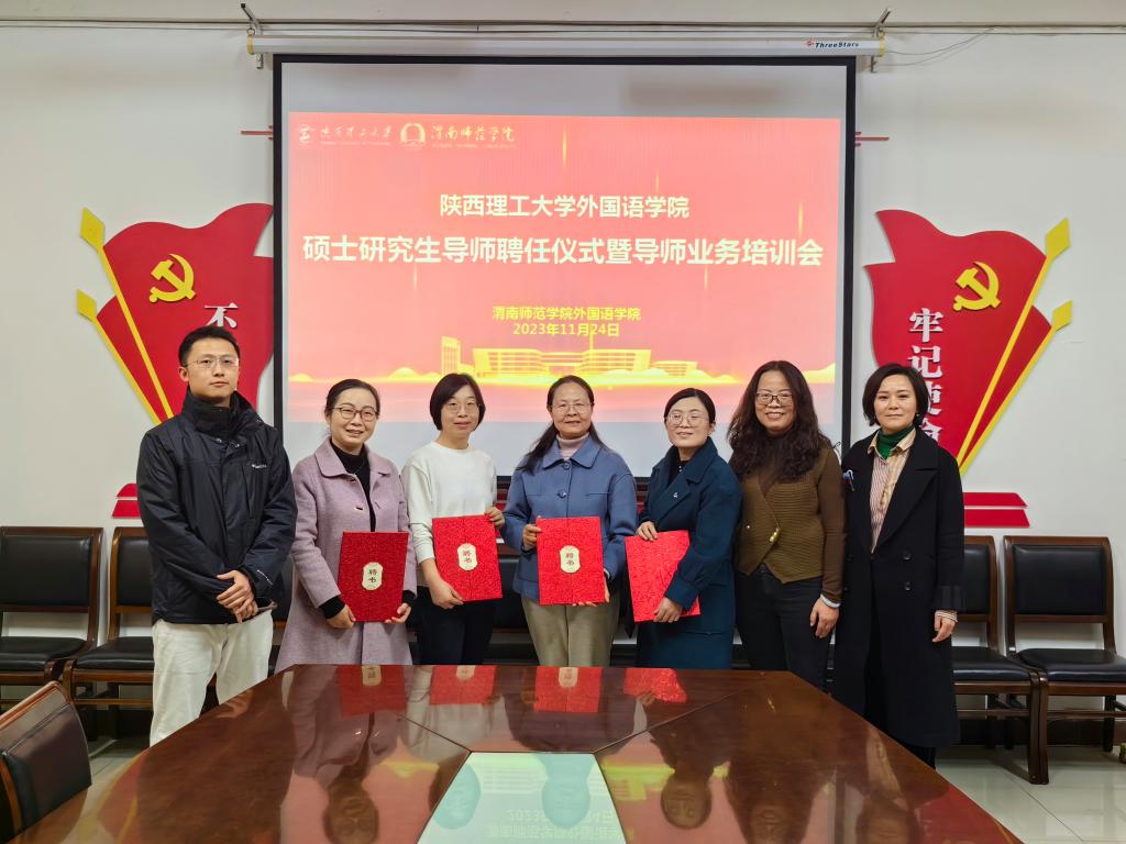 11月24日下午,受陕西理工大学外国语学院院长余丽委托,陕西理工大学外国语学院研究生秘书崔敏、邓朝路一行在best365外国语学院主持召开了陕西理工大学硕士研究生导师聘任仪式暨导师业务培训会,best365外国语学院院长李海荣及受聘教师出席了此次活动。