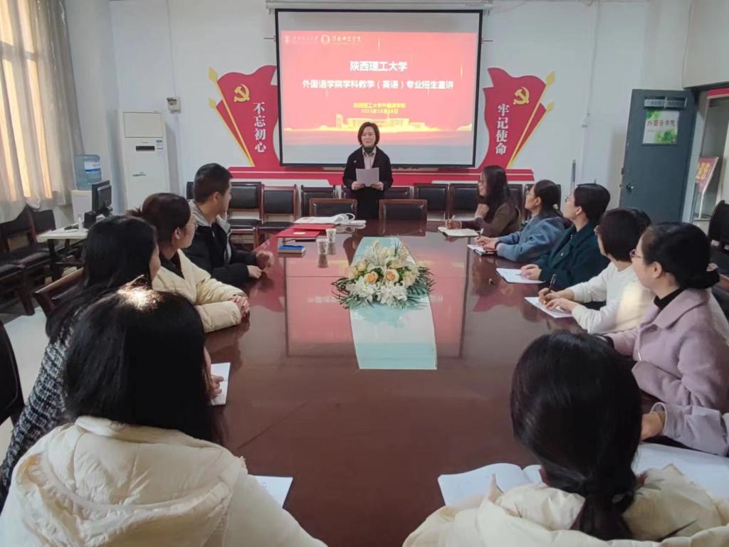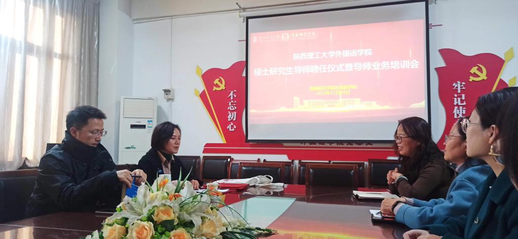 崔敏详细介绍了近年来陕西理工大学研究生部在招生、教学、人才培养以及实习就业等方面所取得的显著成果。李海荣介绍了外国语学院的基本情况以及在硕士生导师培养方面所做的工作,就陕西理工大学对学院工作的支持与帮助表示衷心的感谢,对四位教师受聘为研究生导师表示祝贺,鼓励他们珍惜机会,加强交流,不断提升自身业务能力和教学研究水平,为学院的发展做出更大的贡献。