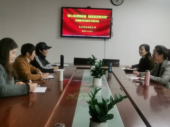 近日,民进高教支部师院召开了“凝心铸魂强根基团结奋进新征程”主题教育学习交流座谈会,会议由主委全祖馨主持,全体成员参加。