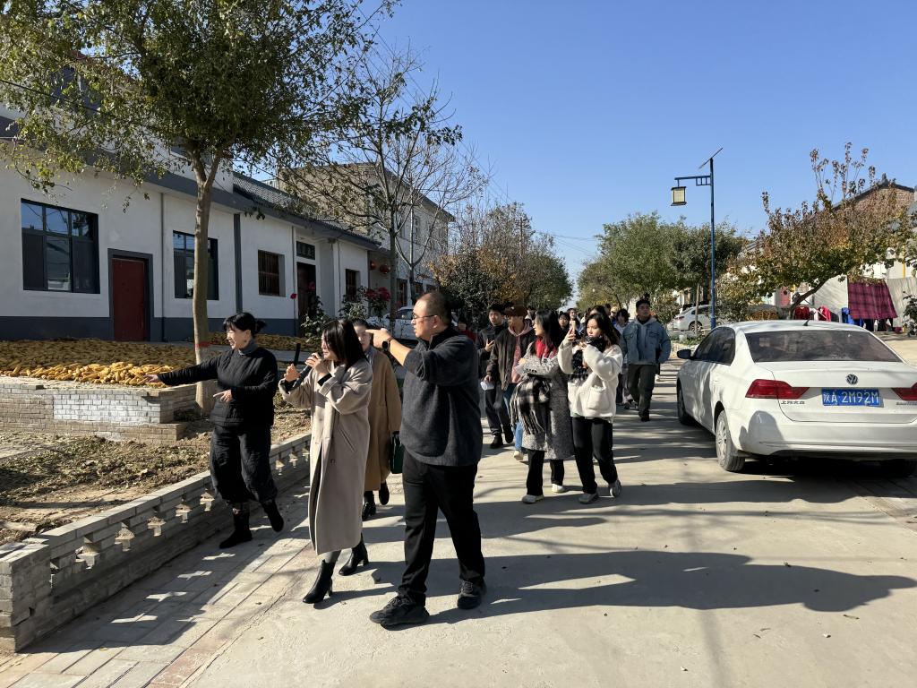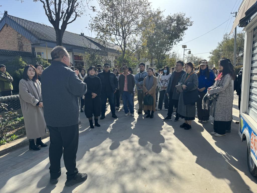 吕春对美术学院环境设计专业一行来新庄村洽谈校企合作表示欢迎,并交流了新庄村目前的发展现状。刘崇霄分享了在全国乡村振兴方面的成功案例,梳理了在新庄村的未来规划与构想。殷晓克院长详细介绍了我院环境设计专业的发展规划、人才培养、成果获取等情况,就双方合作的内容与要求进行了说明,对校企合作实训中心建设、教学模式、学生实践实习、人才就业提出了初步的设想,并希望能够加速推进我院与新庄村之间的深度合作、项目落地、成果转化。代娟表示,教研室全体教师与毕业生可以扎根新庄村,提供从设计方案到软装配套再到工程施工等一站式服务,为力争更高、更远的目标迈进。随后,全体人员在讲解员的带领下走访新庄村的街尾巷道,进行深入调研与考察。