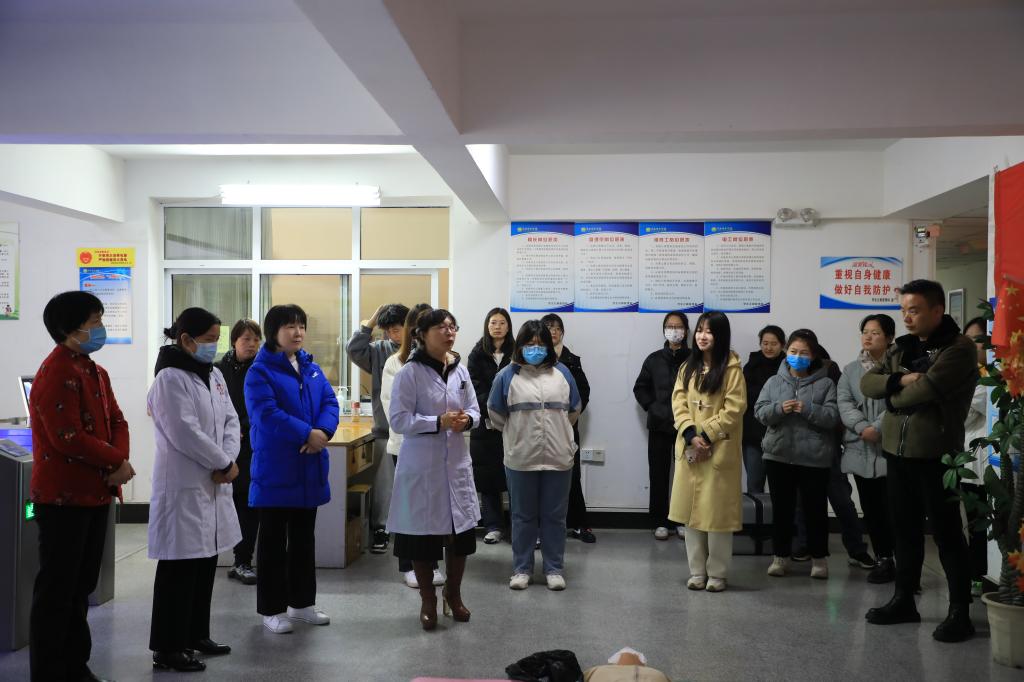 王美丽以电影《人在囧途》为切入点引出海姆立克急救法,阐述了海姆立克急救法对婴儿、幼儿、成人、孕妇等不同人群的操作方法。随后,王美丽现场指导海姆立克急救法的操作手法和施力部位,指导大家规范掌握。