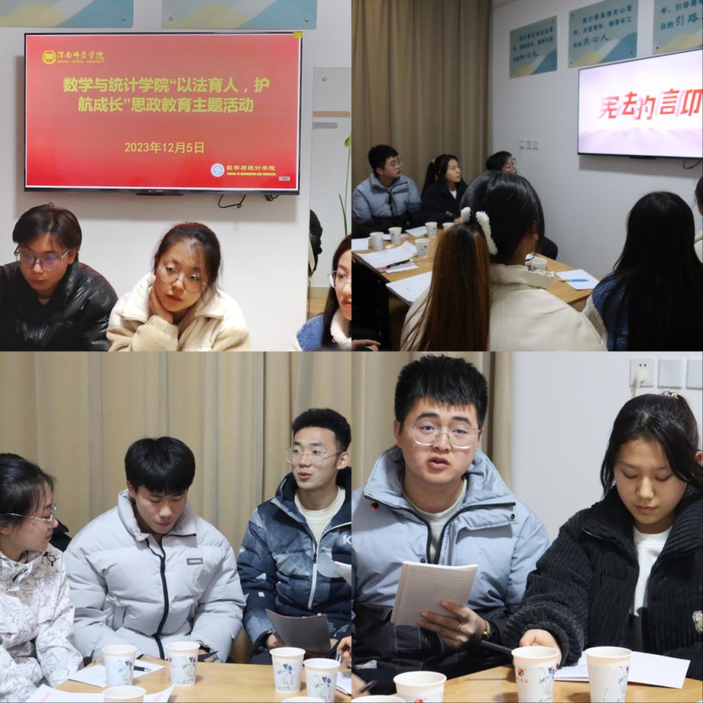 在全面贯彻党的二十大精神,落实立德树人根本任务的关键时刻,数学与统计学院于12月5日晚,在九号公寓“一站式”学生社区开展了“以法育人,护航成长”思政教育主题活动。此次活动由党总支书记武江波、辅导员夏超以及21级部分学生干部共同参与。