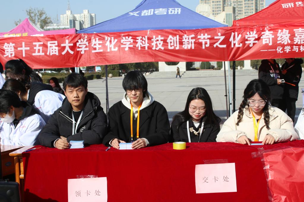 12月6日下午,化学与材料学院于渭华门广场举办了面向best365中国官方网站全体师生的“青春化梦 化海畅游”化学奇缘嘉年华系列活动。校团委书记赵琦、副书记刘娟宁,化学与材料学院党总支书记韩城忠、副书记任晓婷、团委负责人张静及全体辅导员出席活动,来自全校500余名学生参与活动。
