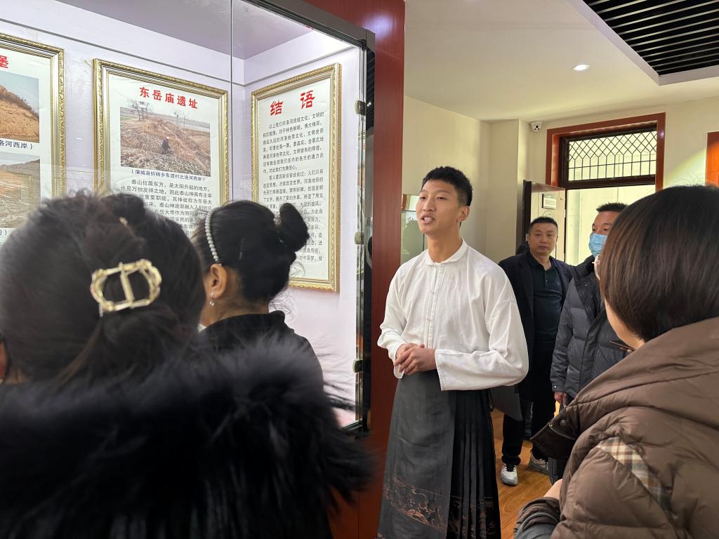 历史212班李栓同学对河洛文化的地理位置、历史依据、文化遗址和历史遗物进行了介绍,馆内的多件文物全方位、多角度展示了河洛文化的形成与演进轨迹。