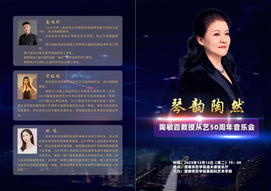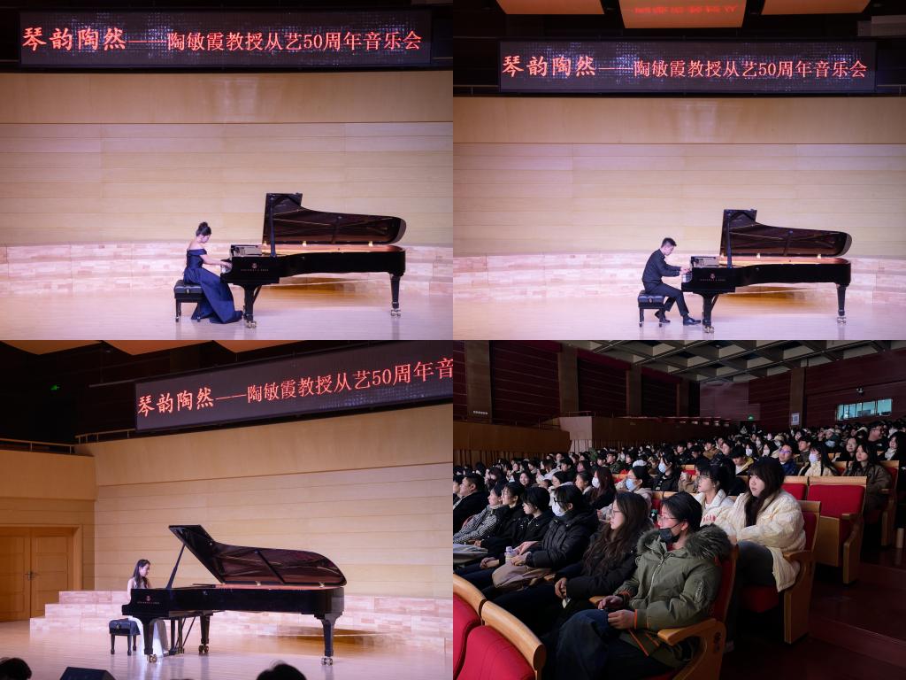 12月12日晚,举办“琴韵陶然——陶敏霞教授从艺50周年音乐会”,音乐会邀请了陶敏霞在读研究生高旭升、宋桠瑞、姚远三人同台演出。
