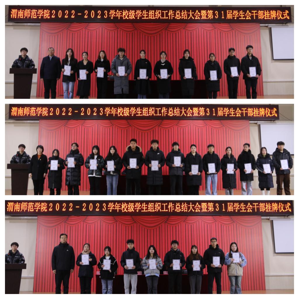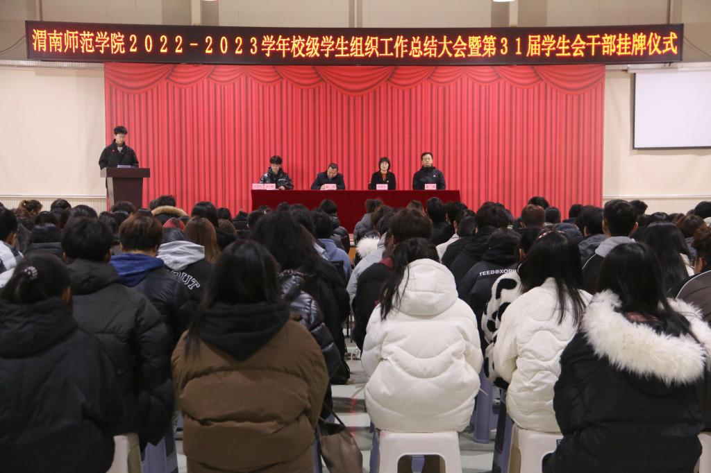 为深入学习贯彻党的二十大精神、落实团的十九大工作部署,充分发挥学生会以及附属组织的组织能力,服务能力,领导能力。12月18日晚,best365在渭师青年之家大学生活动中心举办校级学生组织工作总结大会暨第31届学生会干部挂牌仪式。校团委书记赵琦,校团委副书记刘娟宁、潘涛出席会议。