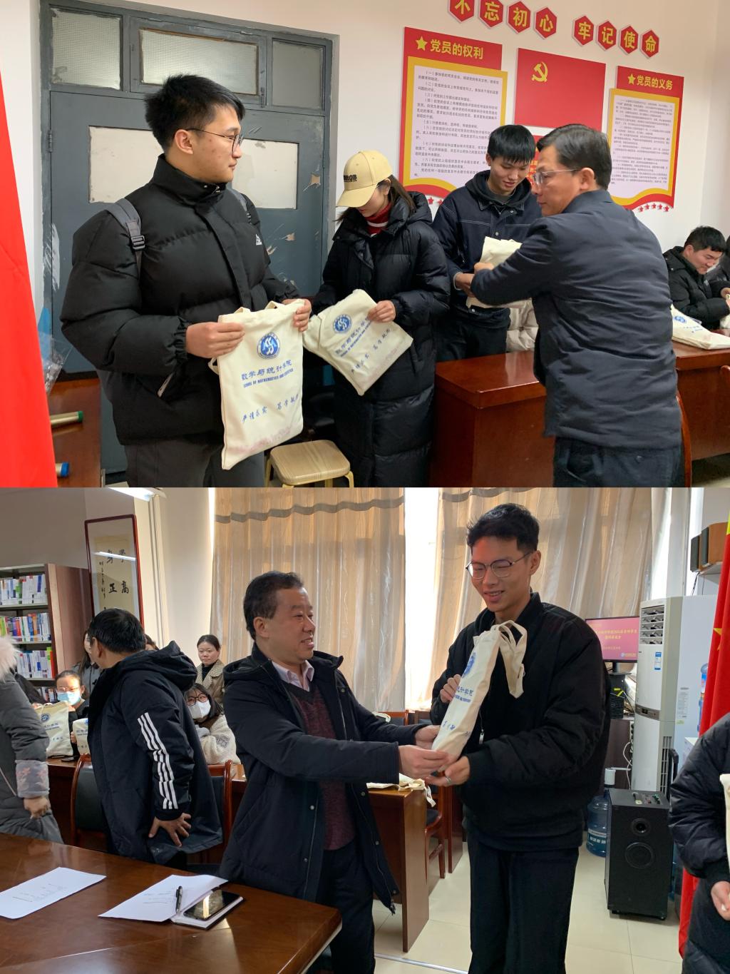 最后,各位领导老师为每位考研同学发放了精心准备的暖心考研加油包,印有学院标识的加油包中装满了饱含祝福的慰问品——新鲜的橙子,营养的牛奶预祝考研学子心想事"橙"、金榜题名。