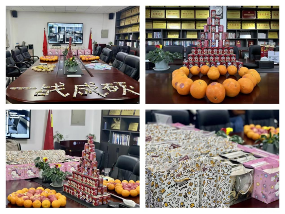 送祝福环节,学院领导为考研学子发放学院精心准备的加油福袋,加油袋为大家分装了考试用品、祝福礼品、祝福贺卡、口罩等物品。其中中性笔,铅笔寓意执“笔”为剑、巧克力寓意“巧”克难题、旺仔牛奶寓意运气“旺旺”、橙子寓意心想事“橙”、苹果面包寓意“苹”安“包”过,,礼品袋上贴上了“金榜题名、一战成硕”等祝福语,细节中呈现满满的爱和无尽的美好祝福。