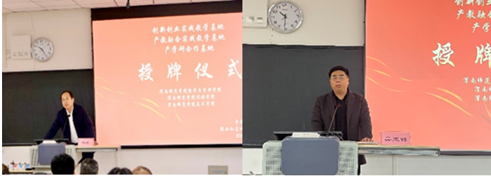 随后,杨荣镇长、吴亚锋董事长、王艳芳总经理分别授予经济与管理学院“创新创业实践教学基地”、传媒学院“产教融合实践教学基地”、美术学院“产学研合作基地”牌匾。同时,由贺宏福副院长宣布获奖者名单,邀请杨荣镇长、吴亚锋董事长、王艳芳总经理、曹熙斌院长、殷晓克院长和贺宏福副院长为“营销策划和产品包装设计大赛”获奖学生颁发荣誉证书及奖金,其中,一等奖共2项,奖金各1000元,二等奖共6项,奖金各500元,三等奖共12项,奖金各200元。
