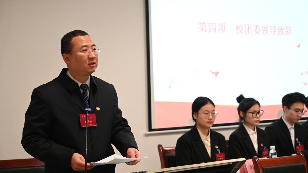 赵琦代表校团委向大会的召开表示祝贺,对学院共青团工作取得成绩表示赞赏,他希望,学院要提高认识,规范程序,确保大会圆满成功;要荣担使命,激发活力,新班子展现新作为;要提高站位,认真选举,积极筹备“学校第四次团代会”胜利召开。