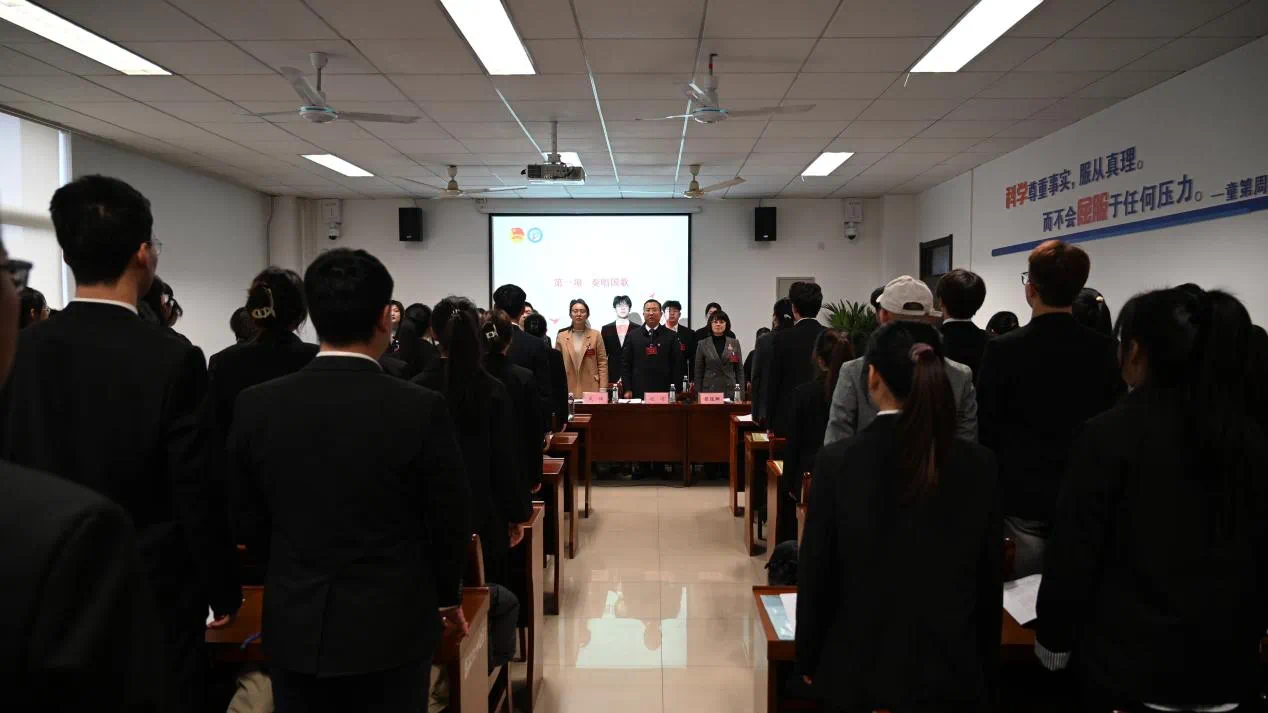 大会在庄严的国歌声中拉开帷幕。