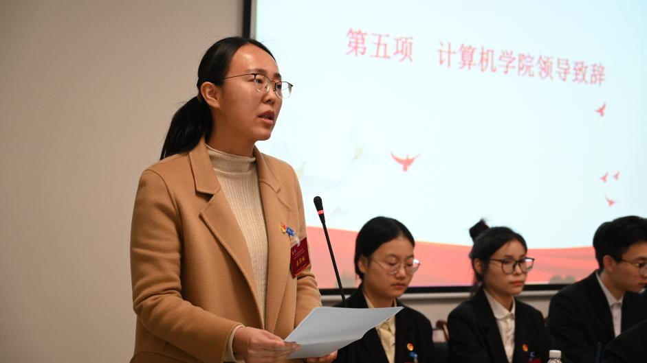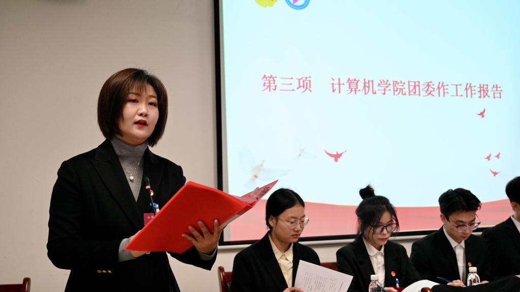 于樾代表学院团委作了题为《青春正当时,奋进新征程——团结带领全院团员青年为学校学院高质量发展贡献青春力量》工作报告。