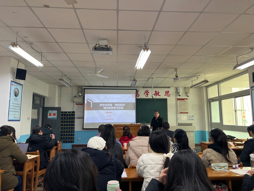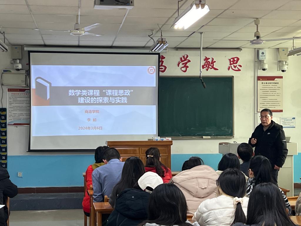 3月6日下午,商洛学院原教务处处长、原数学与计算机应用学院院长李超教授应邀为数学与统计学院师生作题为“数学类课程 ‘课程思政’建设的探案与实践”的分享报告。报告会由院长陈斌主持。