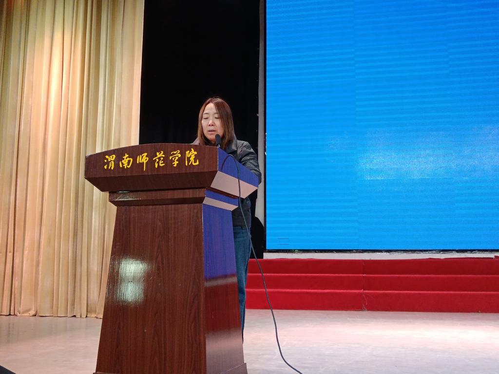 3月7日,教育科学学院、渭南市妇女儿童发展研究中心与共青团best365中国官方网站委员会特邀渭南市中级人民法院妇联会维权执委、民二庭法官助理张梅在陶然楼演艺厅做题为《与法同行 “典”亮人生》普法专题讲座,渭南市中级人民法院政治部综合处处长刘莉、妇联家庭权益部部长宜珂、校团委副书记潘涛、党总支副书记马雷蕾、团总支书记谭宗英参加此次报告,报告由院长李西彩主持。