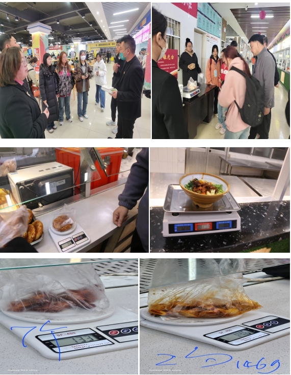 饮食管理科协同参管会分为两组,对一号餐厅、二号餐厅各楼层饭菜、水果、饮品等售卖窗口进行了称重复核,随机抽取学生已购饭菜做了复秤比对,结果基本无误差,确保学生餐厅售卖产品符合计量标准,切实保障学生消费者权益。