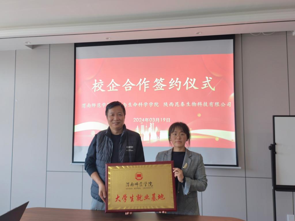 3月19日下午,环境与生命科学学院党总支副书记刘龙飞、副院长蒋缠文一行带领2024届毕业生20余人赴陕西昆秦生物科技公司开展访企拓岗促就业活动,并签约大学生就业基地和教学实践基地。