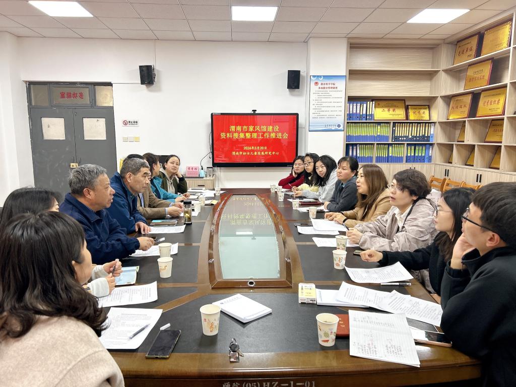 3月20日下午,渭南市妇女儿童发展中心召开“渭南市家风馆建设资料搜集整理工作”推进会,会议特邀人文学院历史学教授张始峰、杜振虎、王文涛、孙萍萍,家风家训研究专家张静莉教授,渭南市妇女儿童发展中心主任李西彩、副主任严苏风教育科学学院教授张西宁、马雅菊,范牡丹等教师参加会议,会议由妇女儿童发展中心主任李西彩主持。