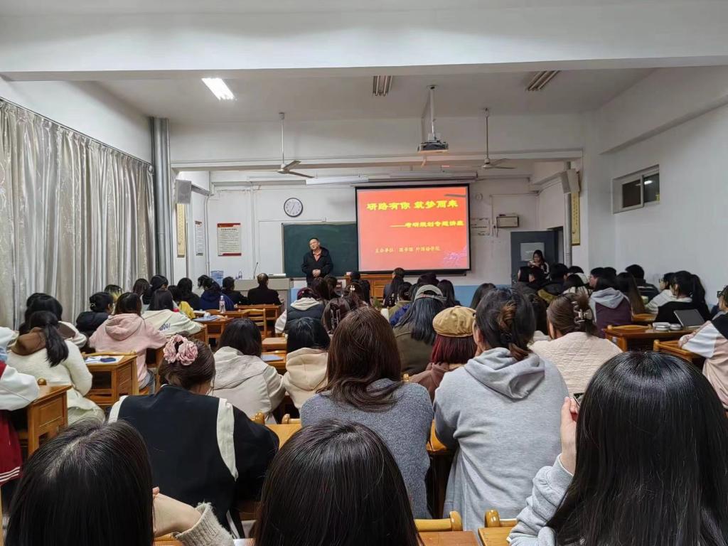 3月26日晚,图书馆邀请起点考研网讲师毛访蘅,和外国语学院共同举办了“研路有你· 筑梦而来考研规划”专题讲座,拉开了读书月活动的序幕。外国语学院副书记高军强和三位辅导员、图书馆办公室和建设部主任参加,图书馆副馆长王同江主持讲座。