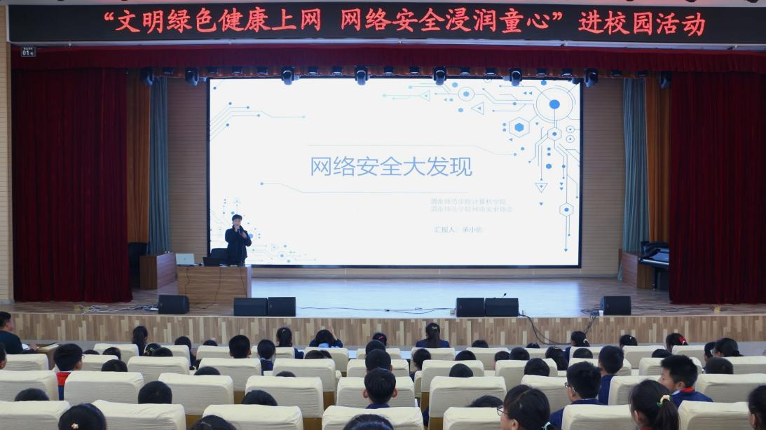 3月29日上午,计算机学院前往渭南市第一小学开展“文明绿色健康上网 网络安全浸润童心”进校园活动。计算机学院党总支副书记张俊娜,网络信息安全协会指导老师葛莉,学院团委书记于樾,学院团委副书记王咿卜参加本次活动。