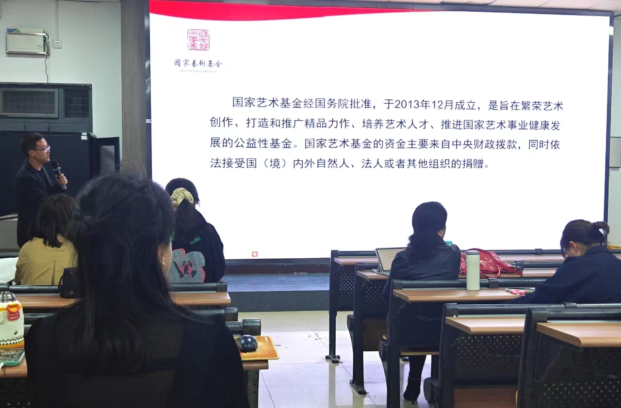 4月2日晚,学校召开2025年国家艺术基金项目申报动员暨辅导报告会,音乐学院青年科研骨干教师、2024年国家艺术基金《阿宫腔表演人才培训》项目负责人陈波应邀作了题为《国家艺术基金资助项目申报思考与体会》的报告。会议由科学研究处处长林关成主持。
