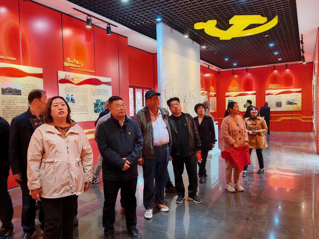 在王尚德烈士纪念馆内,党员同志们怀着崇敬的心情认真聆听革命烈士们的英勇事迹,景仰烈士“尚行利群,不忘初心。德昭后辈,砥砺前行”的崇高精神。