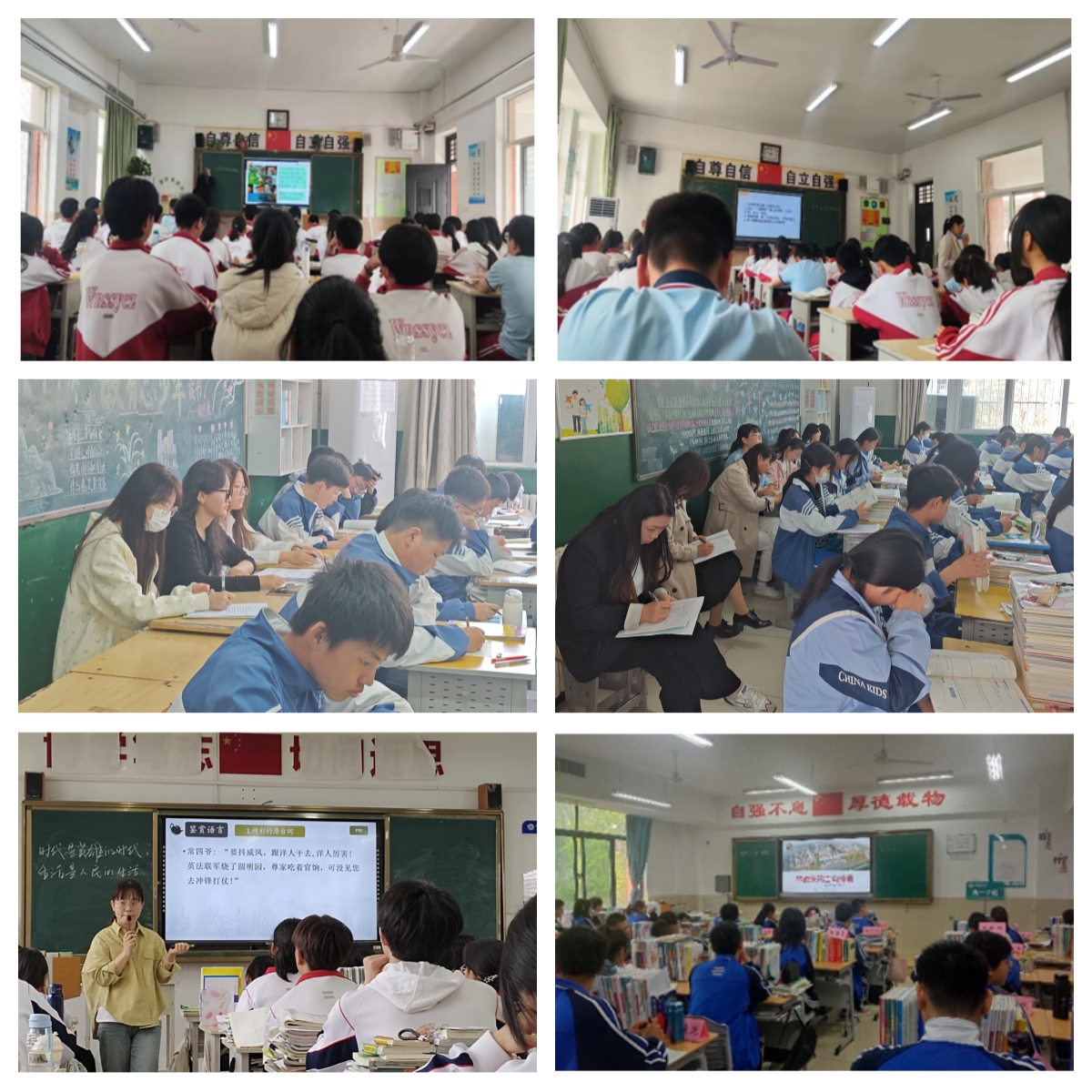 在每一个见习点,师范生都全程参与了品质课堂各环节。先是聆听各校在教育教学改革方面的模式、思路、措施、成效等分享汇报;接着根据所学专业集中观摩语文、历史课堂教学展示,深入教室观摩一线课堂教学,以及观摩学校特色教学活动;最后,参与集中教学研讨、科研研讨与点评等。这些活动,很好契合了人文学院师范专业人才培养方案中《教育见习》课程教学大纲内容,有效落实了教育见习这一实践教学的重要环节。