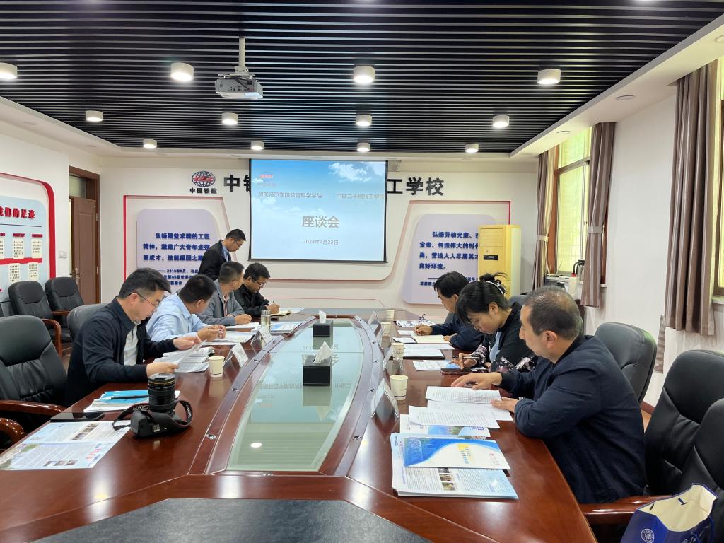 刘峰副院长从学院的历史沿革、师资队伍、人才培养、科学研究、合作交流等五个方面介绍了教育科学学院的建设发展情况,马雷蕾副书记围绕我院今年毕业生结构和用人单位需求做了详细的说明。随后,双方与会人员就相互合作事宜进行了广泛而深入的交流和探讨。最后,李武军对中铁二十局集团技工学院的热情接待表示感谢,并表示,教育科学学院将以此次调研为契机,进一步深化同用人单位的深度合作,促进学院人才培养与用人需求的对接,培养更多优秀人才,助力毕业生高质量就业。