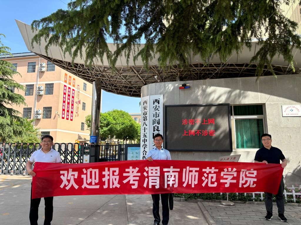 4月25日,数学与统计学院院长陈斌、数学系刘炳全教授、统计与数据科学系主任董晓萌、办公室副主任夏超等一行赴西安市阎良区关山中学开展招生宣传与访企拓岗活动。对学校2024年各专业招生计划情况进行了全面宣传,并对今后人才培养与就业深入合作进行了充分交流,为未来的优秀学子提供更为广阔的求学选择。