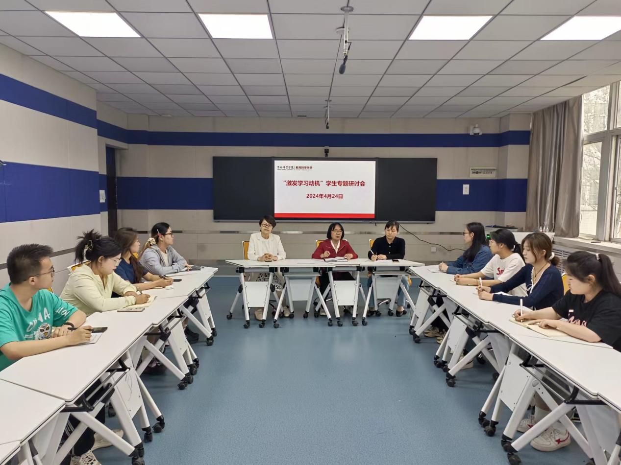 在“激发学习动机”学生专题座谈会中,付俊贤教授提出,学校教育教学的中心工作是教学,根本任务是“立德树人”,强调教师要以实际行动贯彻党中央的文件精神,即“建设高质量教育体系,建设高素质专业化教师队伍,深化教育改革”,教学的中心环节就是上课,上课就要以学生为本,激发学生的学习动机,提高学习效果。会议上学生们踊跃发言,表达了他们对学习的期望和困惑。他们提出希望有更多互动性强、贴近生活的课堂教学,希望教师能够给予更多的鼓励和个性化指导;部分学生提出了学习应以兴趣为目的,希望教师在教育教学中能以激发学习动机为主,内外因形成合力,多措并举,深化课堂教学改革,共同营造良好的学习氛围促进激发学生们的学习动机。