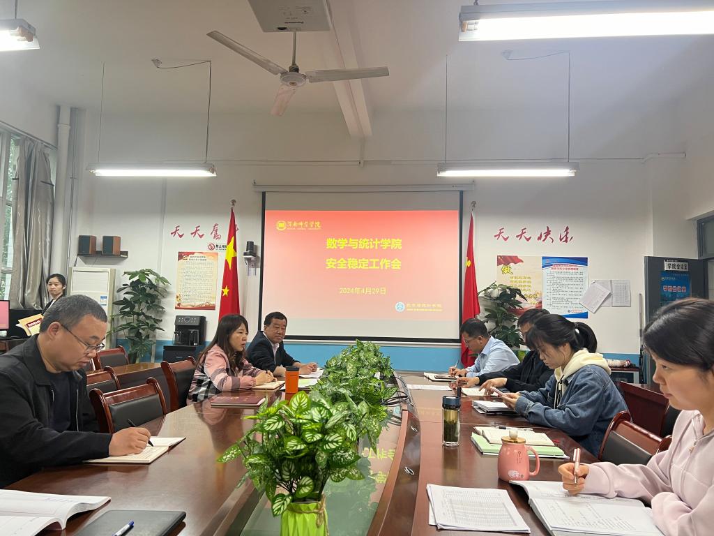 4月29日上午,数学与统计学院召开校园安全稳定工作会,会议由院长陈斌主持,全体处科级干部、辅导员、实验室管理人员参加会议。