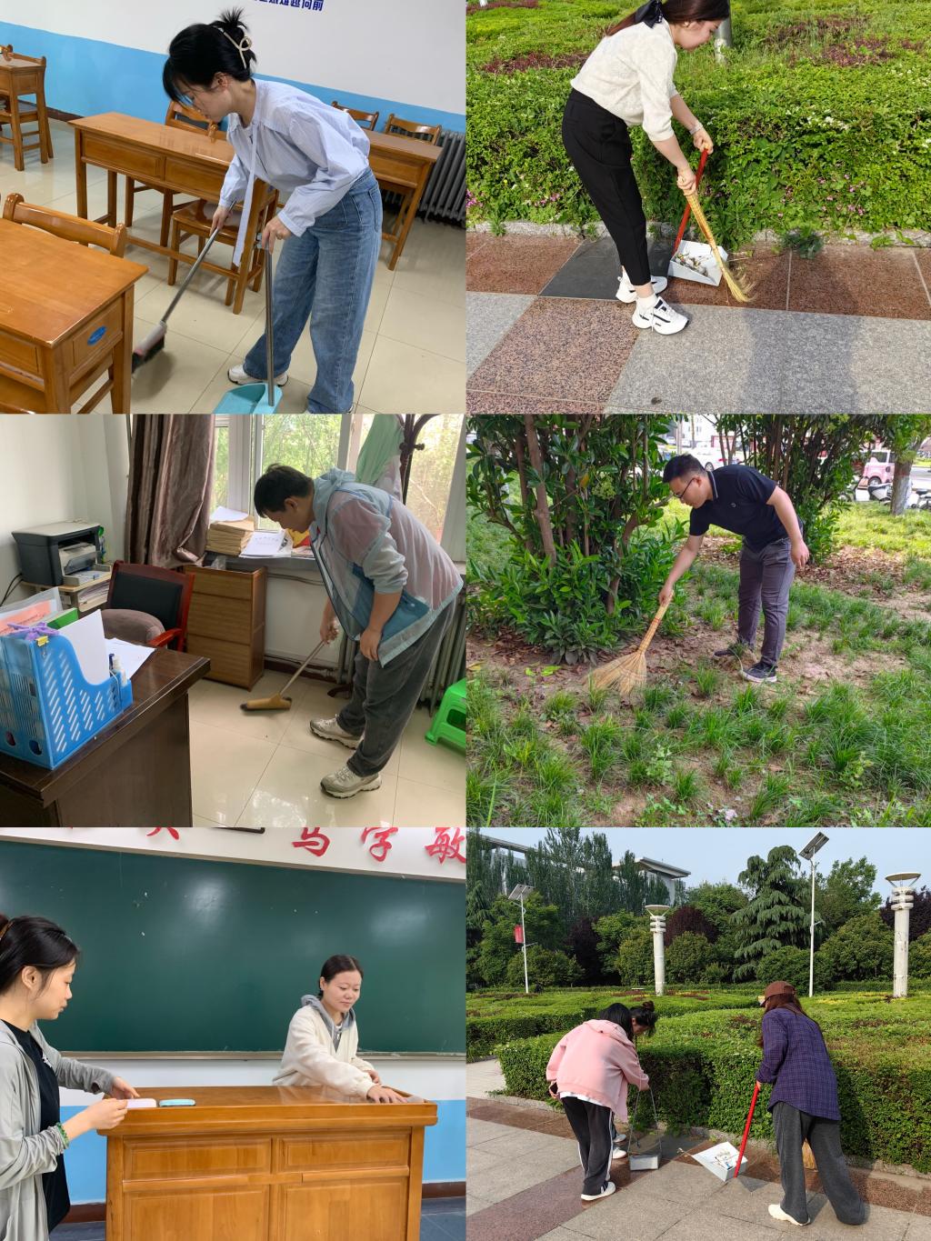 5月8日,数学与统计学院开展“献礼64华诞 共谱新篇章”爱国卫生运动,学院党政负责人、全体行政人员及学生积极参加。