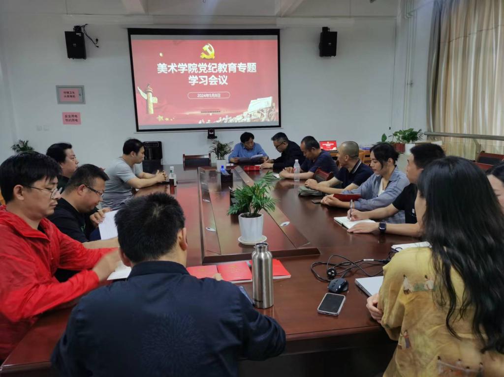 5月8日下午,美术学院党总支在富平校区主教学楼2楼会议室召开党纪教育专题学习会议。学院党总支委员、各党支部书记和教师党员代表参加了学习,会议由党总支书记陈进卫主持。