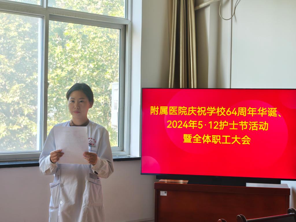 五月繁花似锦,朝气蓬勃。5月9日下午,为庆祝学校建校64周年及第113个“5·12”国际护士节,附属医院召开了以“发展护士队伍 优化护理服务 为学校高质量发展贡献力量”为主题的庆祝校庆暨2024年国际护士节特别活动。本次活动由王新英副院长主持,党支部书记王雅蓉、院长段楚雷和全体职工共同参加了活动。