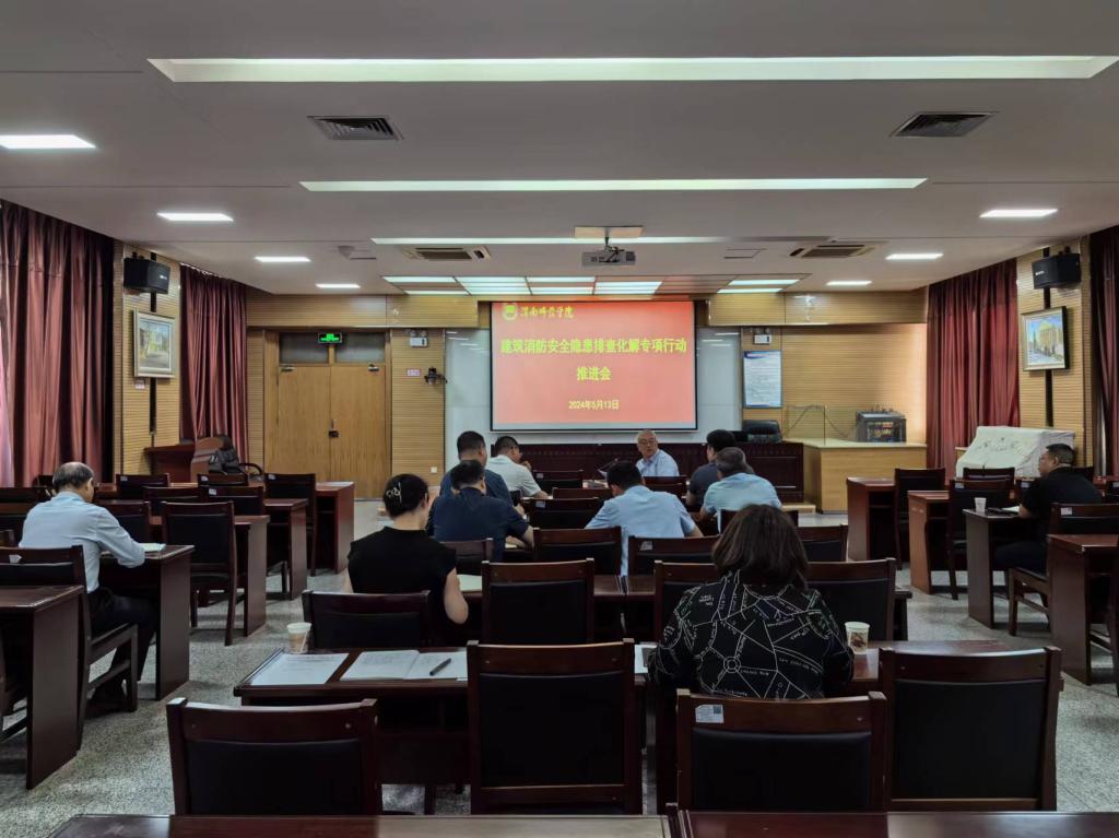 5月13日下午,“全省学校校内建筑消防安全隐患排查化解专项行动推进视频会”后,学校在逸夫楼科学大讲堂,召开校内建筑消防安全隐患排查化解专项行动推进会。党委副书记袁亮主持会议。