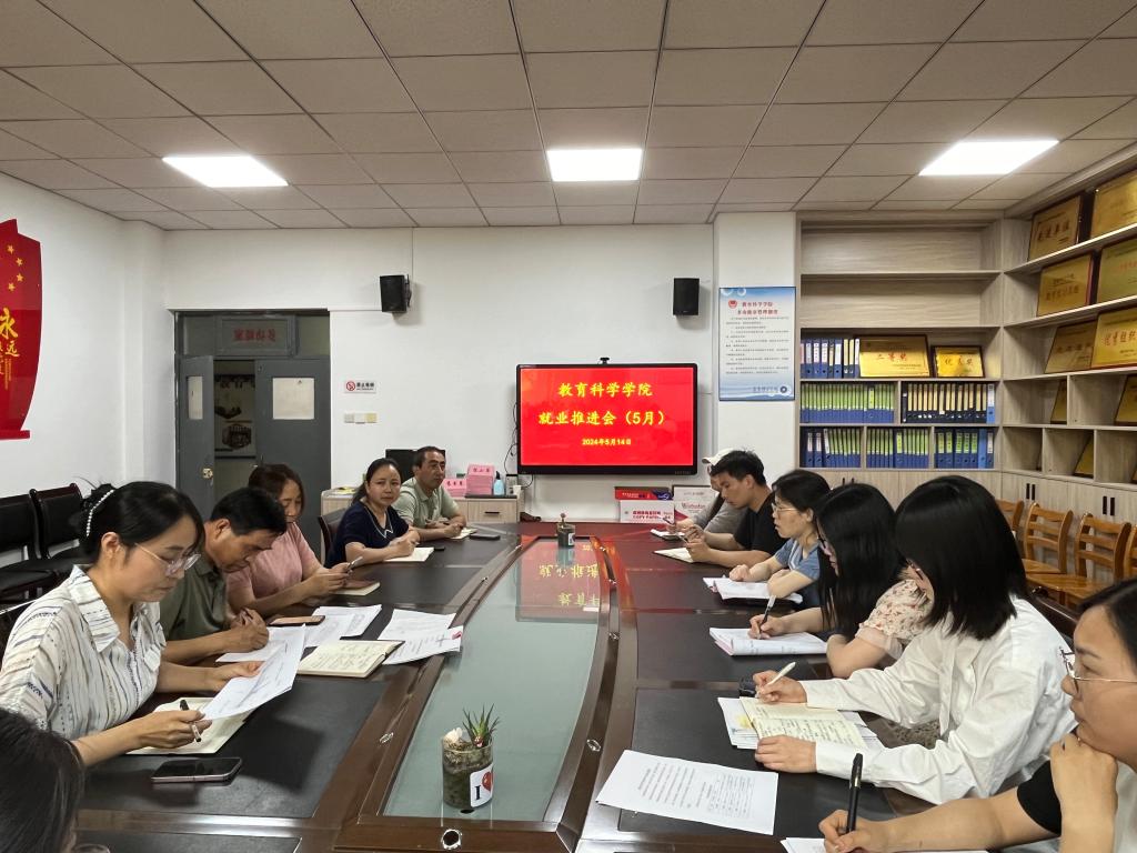 5月14日下午,教育科学学院在2218会议室召开学院毕业生就业工作“金五月”推进会。全体处科级干部、辅导员参加会议。会议由学院党总支副书记马雷蕾主持。