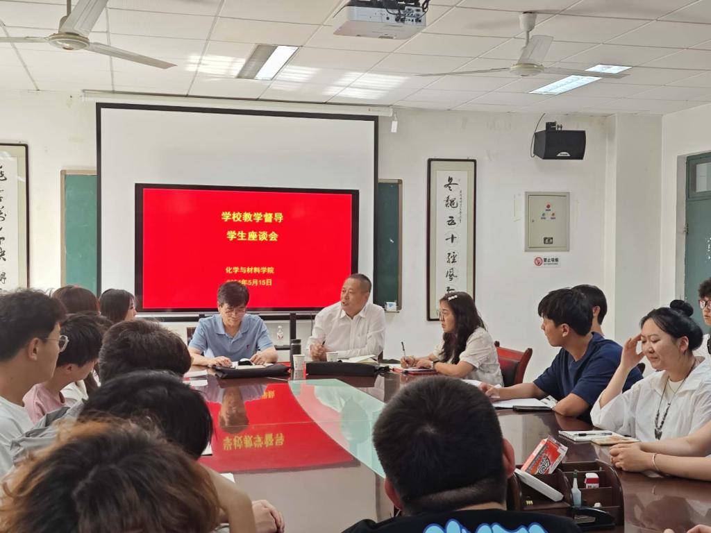 5月15日下午,化学与材料学院召开“教育教学大讨论”之教学督导师生座谈会。学校教学督导金轶锋、高志勇,院长刘展晴、专业建设负责人、教研室主任、教师代表及在校生代表参加此次座谈会。座谈会由金轶锋主持。