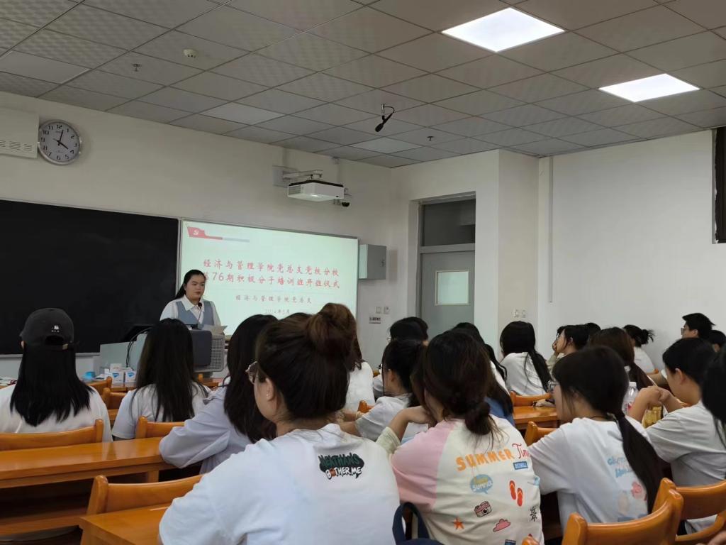 开班仪式上,王晶首先宣读《经济与管理学院党总支第76期入党积极分子培训班培训期间学习纪律和要求》,她要求全体学员严格遵守培训纪律,详细介绍了本次培训班的课程安排、培训内容和目标,她表示本次培训班将采取集中授课、分组讨论、实践教育、参观爱国主义教育基地等多种形式,全面提升入党积极分子政治素质、理论水平和业务能力。