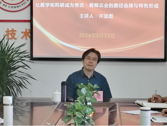 许加彪从自身经验出发,分享了其在教学与科研上的经验及取得的成果。他认为教学最核心的是学科建设,要做好学科建设必须注重科研能力。高校承担着人才培养、社会服务、科学研究与文化传承的职责。作为高校教师,只关注教学是远远不够的。他指出,做科研必须要具有科研意识与创造能力,坚持阅读的习惯并将知识不断内化。他认为,写作是当老师的习惯,必须要长期坚持阅读与写作,不断学习新的知识领域并虚心接受别人的建议。