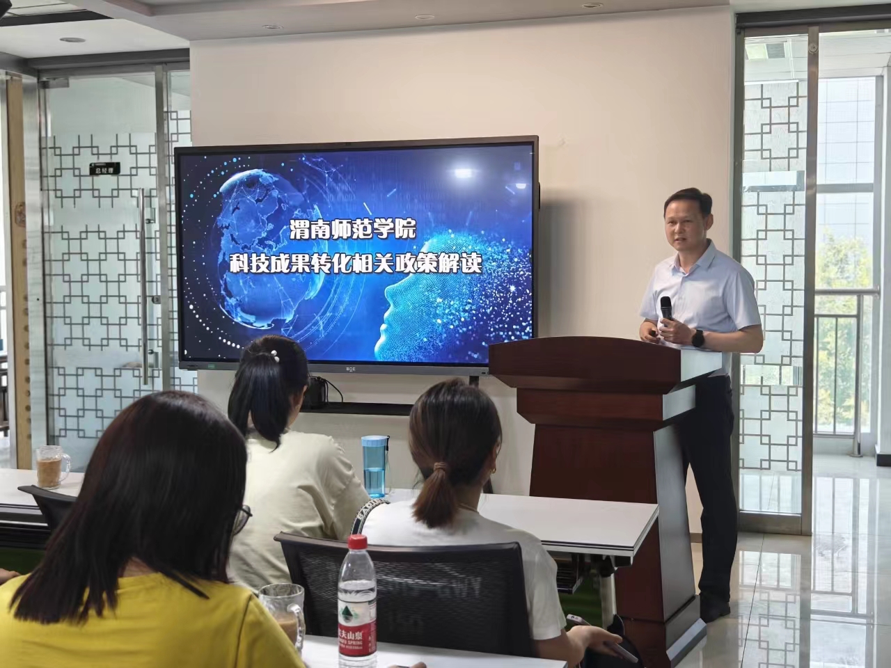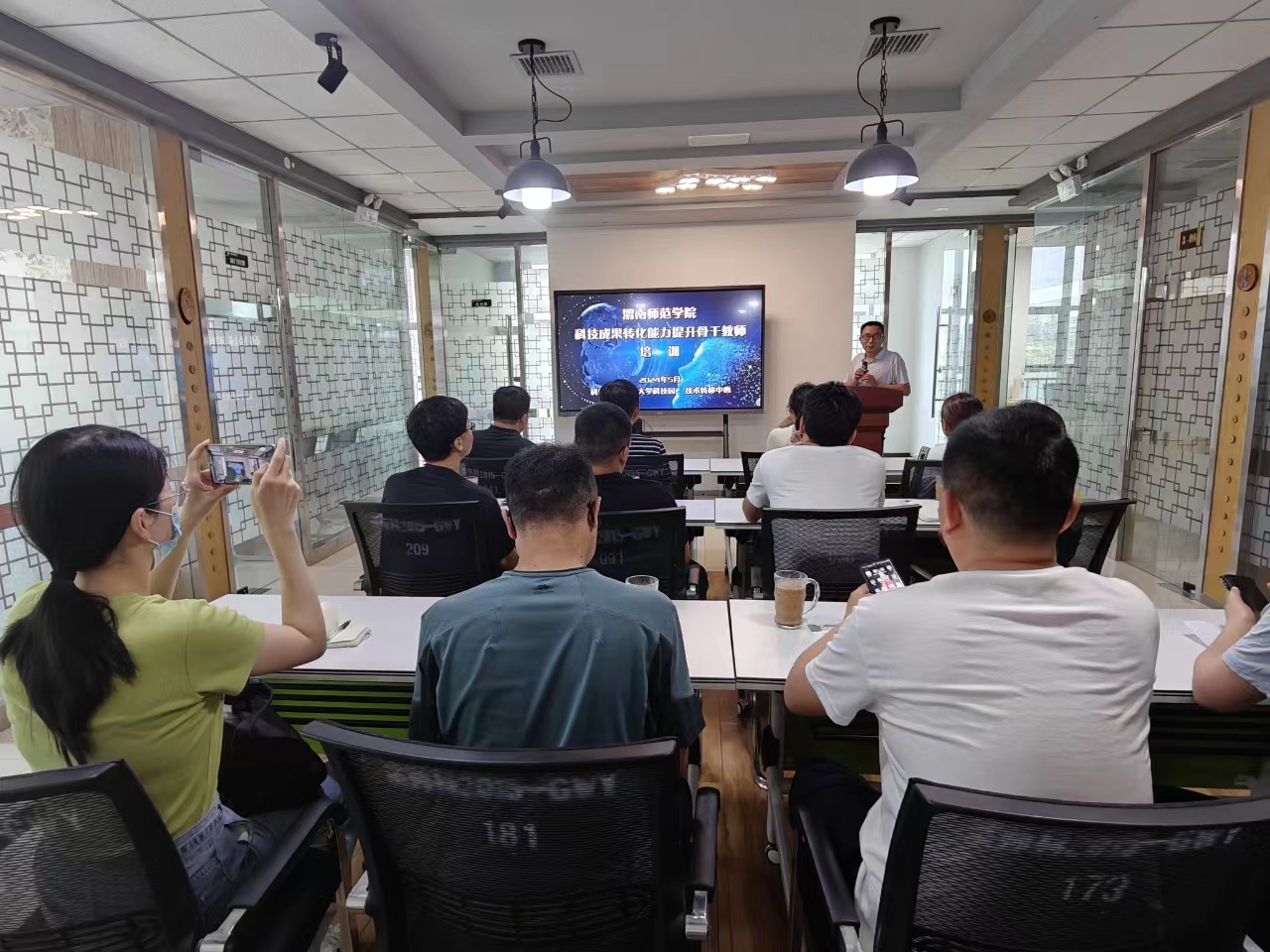 5月22日下午,学校在逸夫实验楼311室举办科技成果转化能力提升骨干教师培训(第一场)。培训由大学科技园总经理何泰伯主持。
