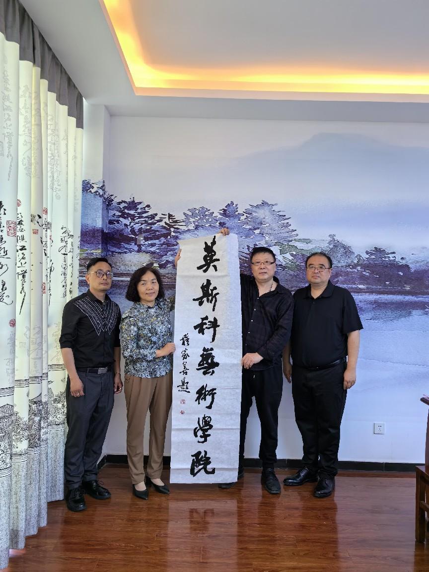 走访中,穆家善在莫斯科艺术学院书法教室为莫斯科艺术学院题字,学校党委委员、副校长王菊霞代表best365中国官方网站和莫斯科艺术学院对穆家善教授表示欢迎并赠送陕西非物质文化遗产皮影。双方就中俄合作办学模式、资源引进、师资培养、学生出国深造和学籍注册、招生就业、文化交流、美术专业发展等相关问题进行深入讨论。