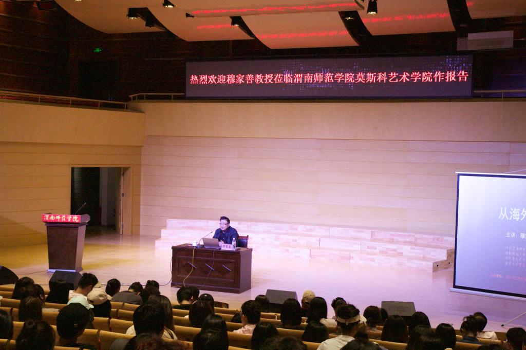 5月23日下午,中国艺术研究院研究员穆家善教授在逸夫楼音乐厅作题为“从海外看中国画”的学术讲座,莫斯科艺术学院执行院长殷晓克、副院长梁卫民、美术学专业300余名师生参与聆听。报告会由殷晓克主持。