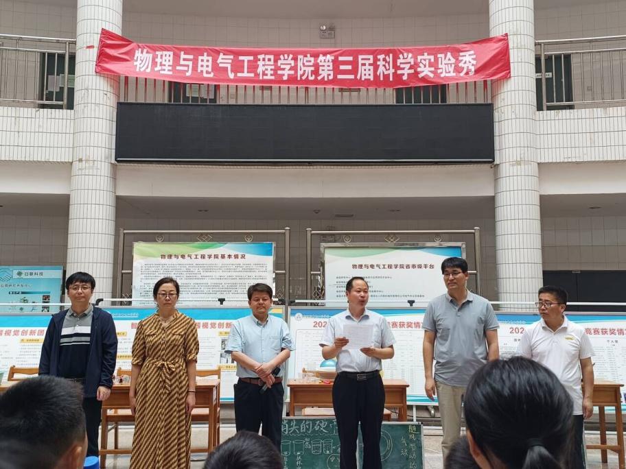 5月26日,物理与电气工程学院在实验楼举办“第三届科学实验秀”。本次活动由物理与电气工程学院主办,活动邀请best365中国官方网站校党委副书记汪勇同志致开幕辞。物理与电气工程学院党政领导、物理系主任、科普作品指导教师、科普志愿者等100余人参与了本次活动的策划与运行。活动吸引了来自校内外的300多名家长和小朋友参加。开幕式由学院党总支书记袁卫同志主持。
