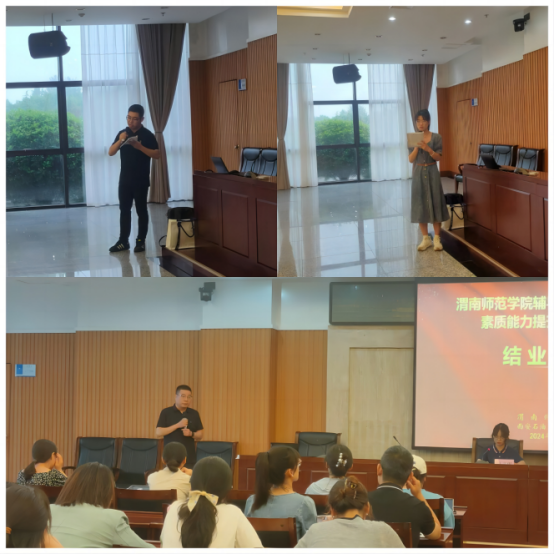 当天下午,在石油大学鄠邑校区举办了本期专题培训结业仪式。在仪式上经济与管理学院党总支副书记谢稷光、辅导员加博文、化学与材料学院辅导员张静分别代表各小组就本次学习培训进行总结发言,学生工作部副部长刘原做培训总结讲话。仪式最后各组长现场为学员们颁发结业证书,至此本次辅导员“铸魂育人”素质能力提升专题培训班圆满结束。