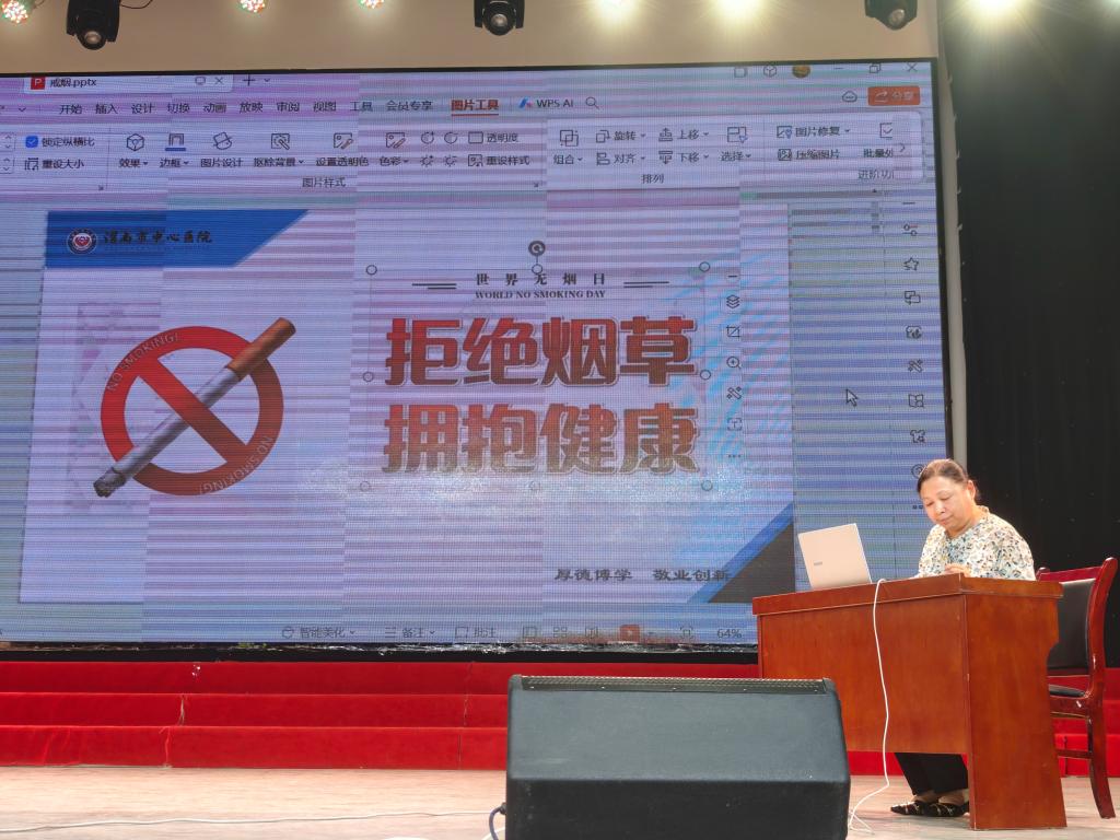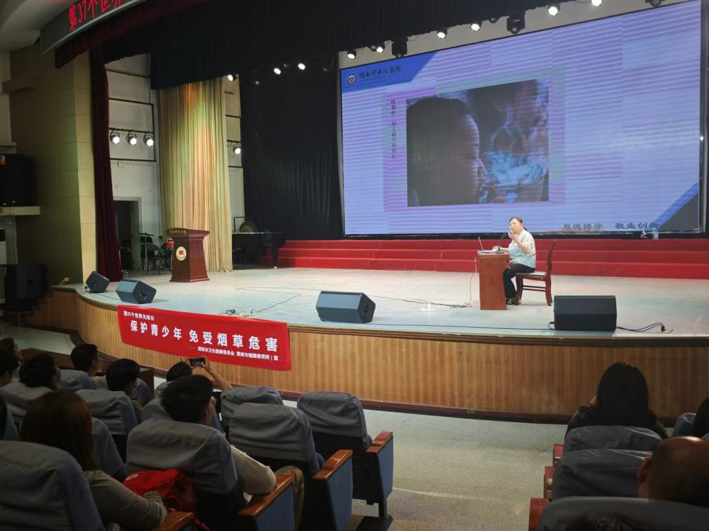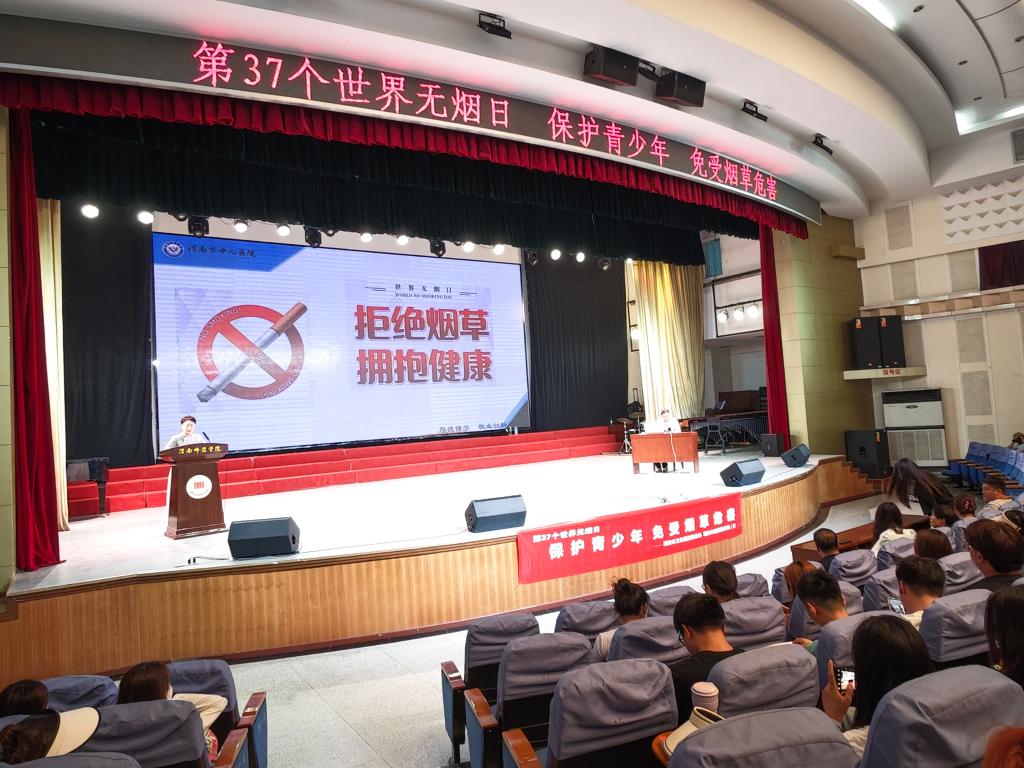 5月31日是第37个世界无烟日,今年的主题是“保护青少年免受烟草危害”。为深入贯彻落实《健康中国行动(2019-2030年)》控烟行动有关要求,进一步提高师生健康意识,推进健康校园、文明校园建设,营造全民控烟,打造无烟校园,5月27日下午,附属医院(控烟办)特联合渭南市健康教育所邀请渭南市中心医院呼吸内科专家康军英主任在陶然楼演艺厅为师生进行了一场“拒绝烟草 拥抱健康”健康教育讲座及宣传活动。