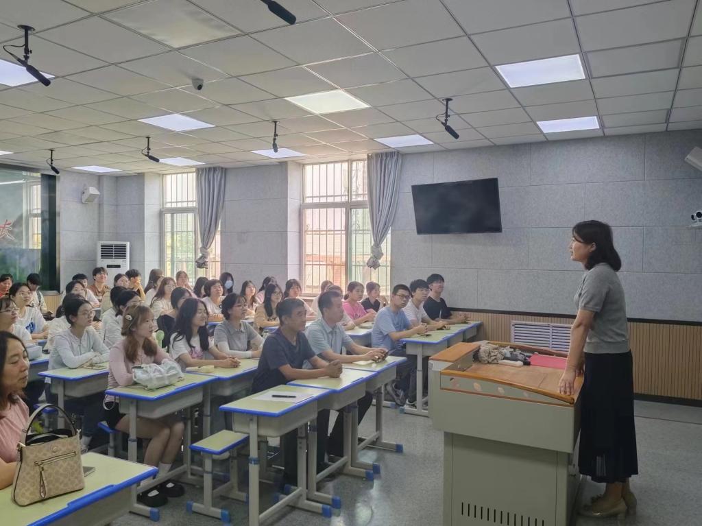 前进路初级中学程红艳校长致欢迎辞。她介绍了学生的心理现状和部分学生存在的不同程度心理问题,表示学校亟需对师生进行心理健康教育方面的专业辅导;她对师院学生上课做出提示,建议大家在课堂上,针对不同学生的需要注意把握分寸恰当应对,希望这次活动能真正帮助到孩子们,使他们健康成长。