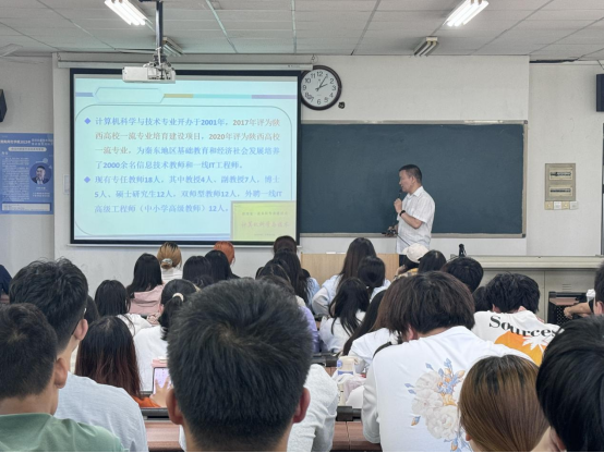 6月5日下午,计算机学院在1201和1301教室举行2023级计算机类专业分流宣讲会。数字媒体技术专业负责人哈渭涛,计算机科学与技术专业负责人同晓荣,软件工程专业负责人罗琪以及2023级计算机类全体同学参加会议,会议由副院长哈渭涛主持。