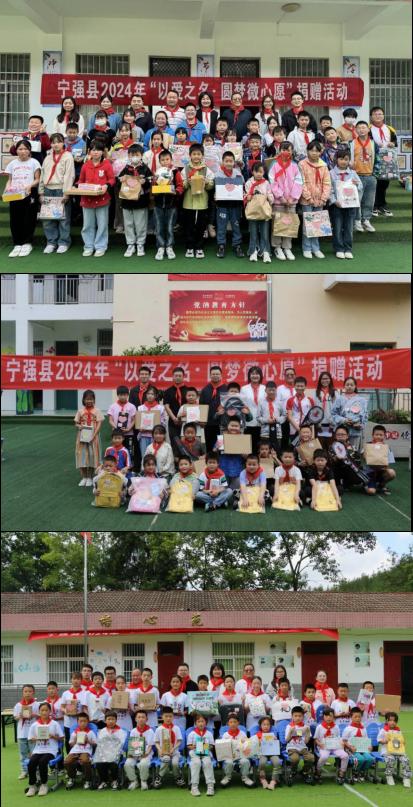 6月5日至6日,学院团委书记于樾、学生代表田哲代表学院参加宁强县团委在大安镇南屏小学、铁锁关镇周家坝小学、燕子砭镇第二小学、代家坝镇南沙河小学举行的发放仪式。共青团宁强县委书记郭铣、宁强县少工委、宁强县关工委相关同志参加活动。