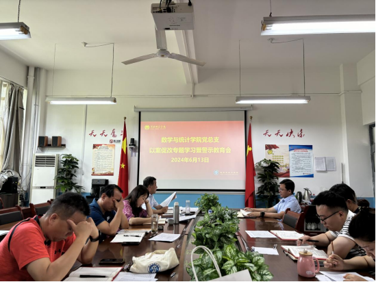 6月13日上午,数学与统计学院召开以案促改专题学习暨警示教育会,学院处科级干部、系主任、专业负责人、实验室主任以及专职辅导员参加。会议由党总支书记武江波主持。