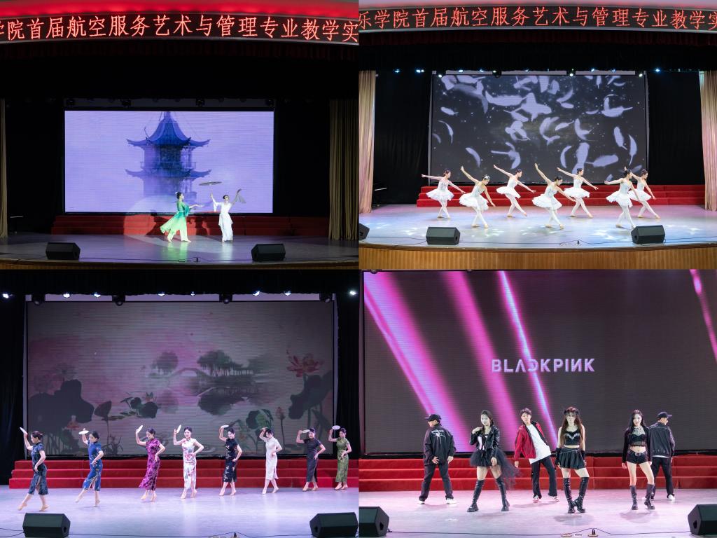 活动伊始,以礼仪操《民航服务礼仪》揭开序幕,充分展示了民航服务人员的专业形象。《青春有“礼” “仪”路前行》的礼仪操表演,彰显了民航服务人员应有的精神风貌。在才艺展示环节,同学们依次登台,舞蹈《踏青》《枕边童话》《入画江南》等作品,不仅体现了深厚的文化内涵,更展示了同学们在舞蹈艺术上的精湛技艺和独特魅力。朗诵节目《中国航天礼赞》、流行舞蹈《Pink Venom》和器乐表演《River flows in you》等节目同学们以精彩的表演,为观众带来了一场视听盛宴。活动的最后环节,航空形象展示《Sparkling》将现场氛围推向了高潮,同学们步伐坚定而优雅,笑容明亮而灿烂,展示了民航服务人员的风采和魅力。