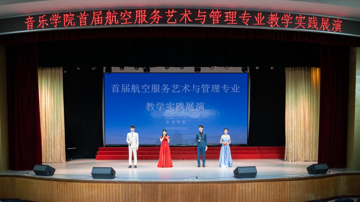 6月13日,音乐学院举办首届航空服务艺术与管理专业教学实践展演。音乐学院院长刘鹏、副院长逯克刚出席活动现场。